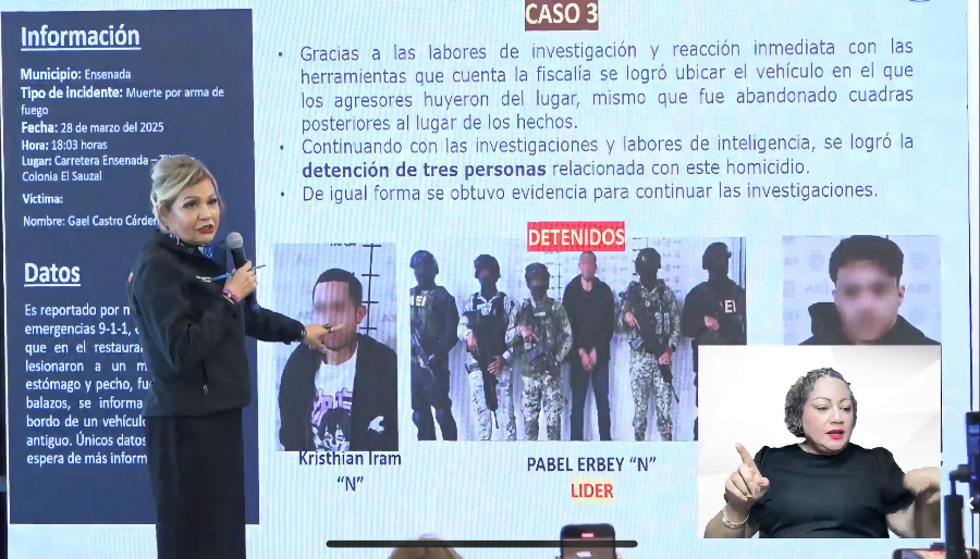 La fiscal general Ma. Elena Andrade Ramírez lo declaró a la prensa este martes, en la conferencia matinal de la gobernadora Marina del Pilar Ávila Olmeda, en torno al crimen perpetrado pasadas las 18:00 horas del 28 de marzo, en el restaurante Villa Marina ubicado en El Sauzal de Rodríguez.