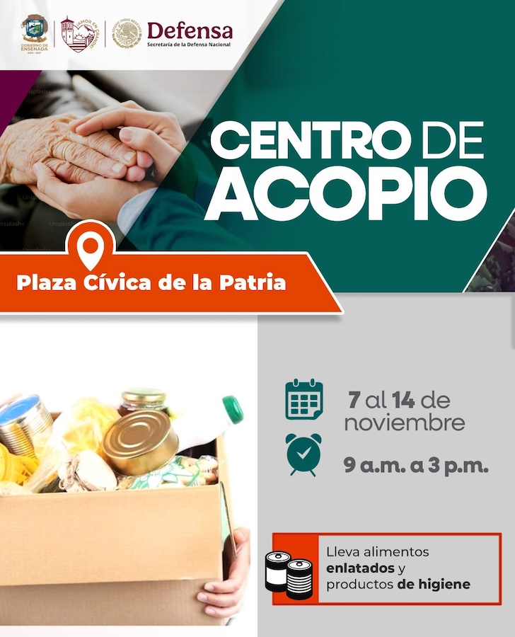 El Gobierno de Ensenada en coordinación con la Secretaría de la Defensa Nacional (Sedena), hacen un llamado a la población a participar en la Campaña de donación de víveres y artículos de primera necesidad.