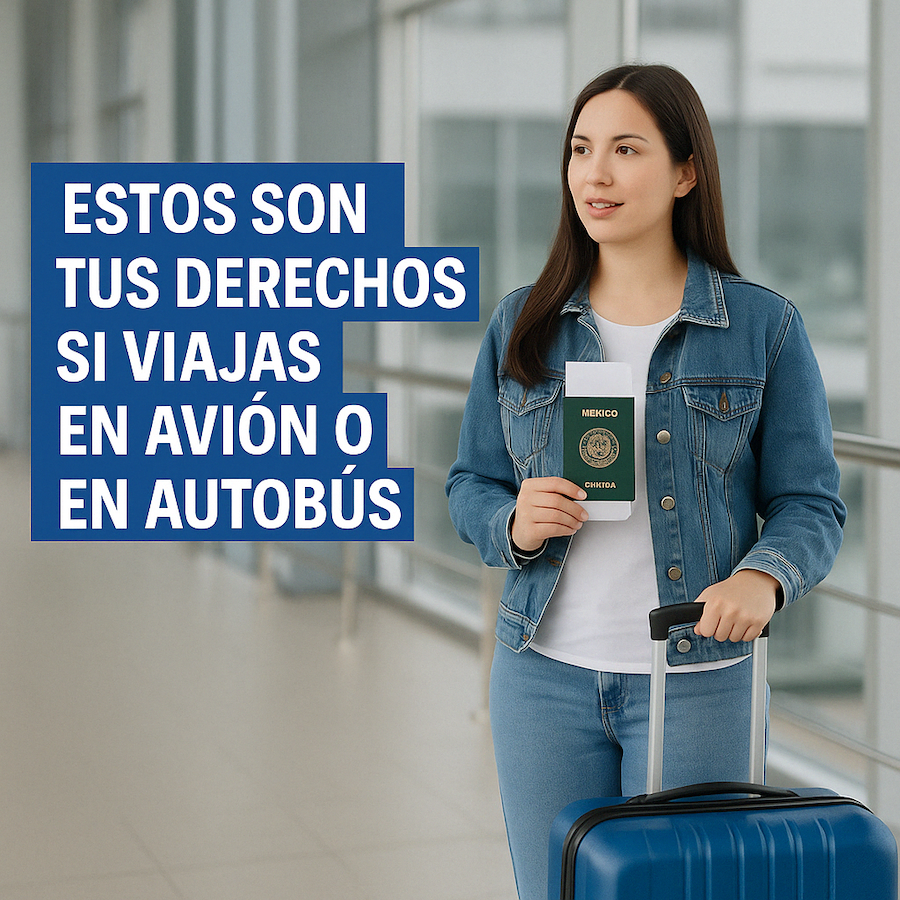 Profeco publicó una guía de derechos para quienes viajan en avión o autobús: reembolsos, compensaciones y equipaje gratis incluidos.  - Foto: Cortesía.