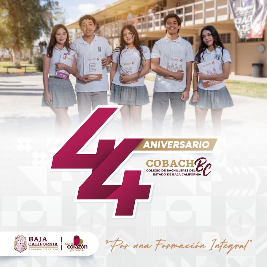 El Colegio de Bachilleres del Estado de Baja California (Cobach) celebra este 20 de junio su 44 aniversario de fundación, consolidándose como una de las instituciones educativas más importantes en la formación de jóvenes en el nivel medio superior en la entidad.